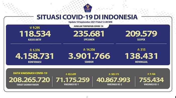 UPDATE Covid-19 Indonesia 10 September 2021: 14.356 Pasien Sembuh, 5.376 Orang Positif, 315 Wafat