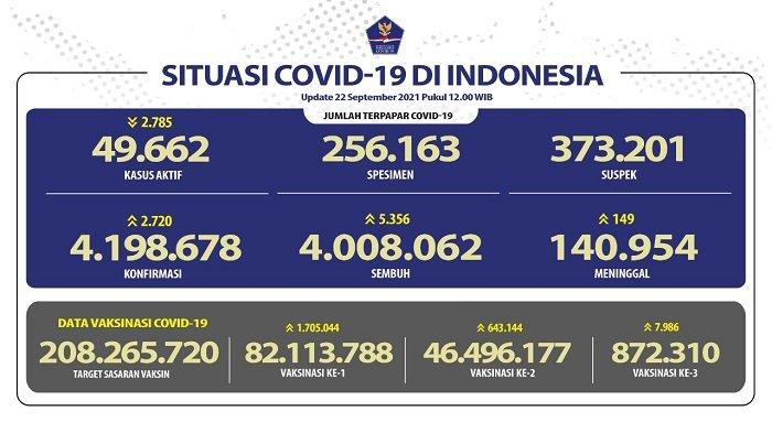 UPDATE Covid-19 Indonesia 22 September 2021: Pasien Baru Tambah 2.720, Sembuh 5.356 Orang, 149 Wafat