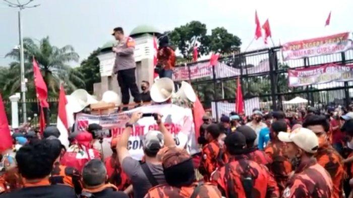 Kapolres Metro Jakarta Pusat, Kombes Pol Hengki Haryadi dengan sigap naik ke atas mobil komando Ormas PP, minta pelaku menyerahkan diri.