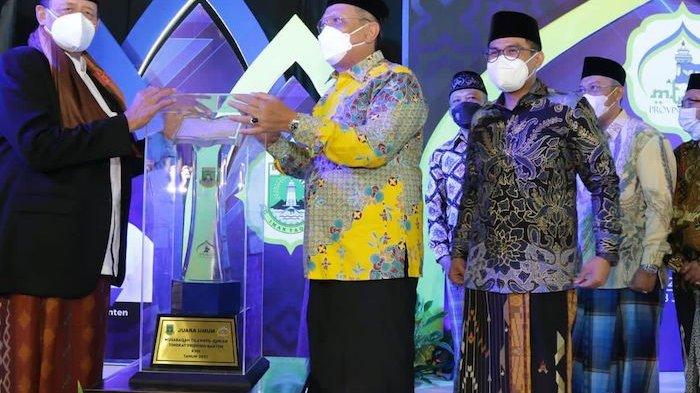 Serta menyerahkan Piala Bergilir MTQ Provinsi Banten kepada Wali Kota Tangerang Selatan Banyamin Davnie.