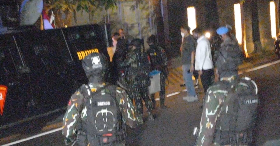 Saat akhir penggeledahan, tampak dua kendaraan taktis (rantis) dan satu mobil operasional milik Brigade Mobil (Brimob) Polri meninggalkan rumah pribadi tersebut sekitar pukul 00.58 WIB.