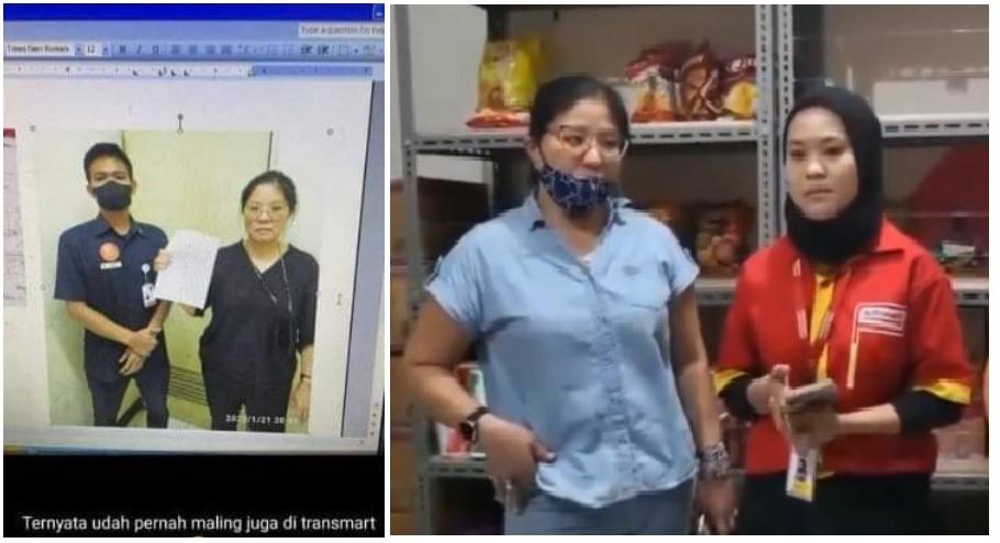 Wanita bermobil Mercy yang mencuri cokelat di Alfamart Cisauk, Tangsel, diduga adalah orang yang sama dengan wanita yang ditangkap di Transmart.