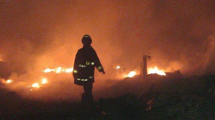TRIBUNTANGERANG.COM - Gudang penampungan oli bekas di kawasan Bencongan Indah, Kelapa Dua, Kabupaten Tangerang terbakar, Rabu (17/5/2023) malam.