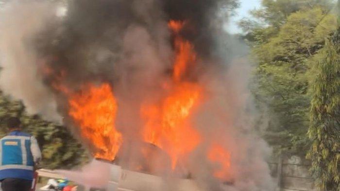 Bermula Percikan Api dari Mesin, Mobil Kijang Terbakar di Bahu Jalan Tol Cikunir